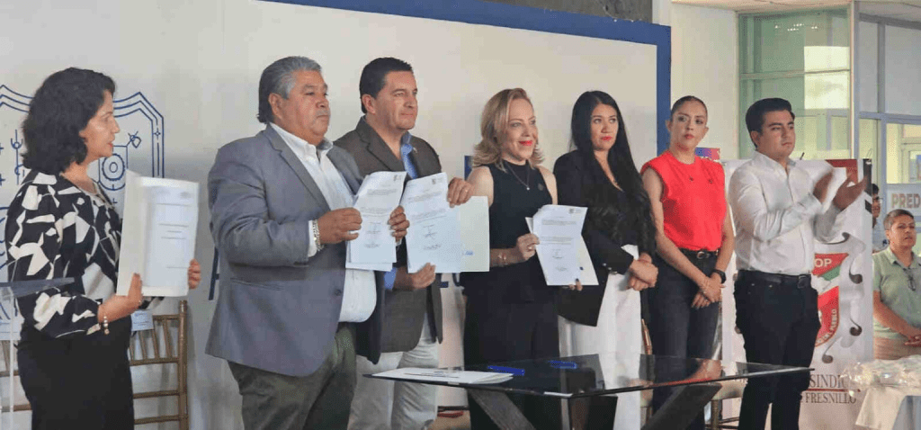 El alcalde de Fresnillo encabezó la firma de un convenio laboral con el Sutsemop, luego de analizar el pliego petitorio del gremio. Como resultado, se acordó un incremento del 6% al salario base de los trabajadores sindicalizados.