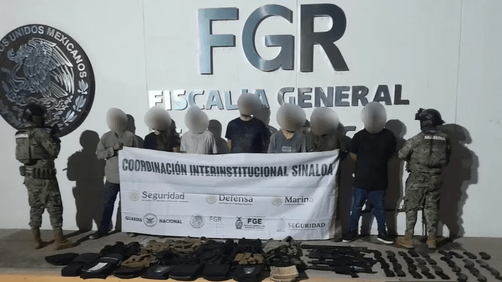 En un fraccionamiento al noroeste de la ciudad, marinos y elementos del operativo “Todos por Sinaloa” acudieron tras recibir una denuncia sobre la presencia de hombres armados. Al llegar, fueron recibidos a balazos. El enfrentamiento terminó con siete detenidos —seis hombres y una mujer— presuntamente ligados a Los Chapitos, la facción de los hijos de “El Chapo” Guzmán.
